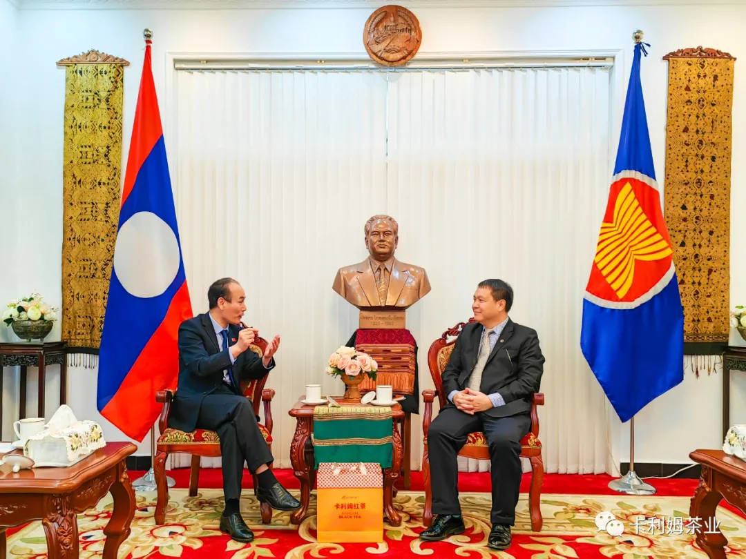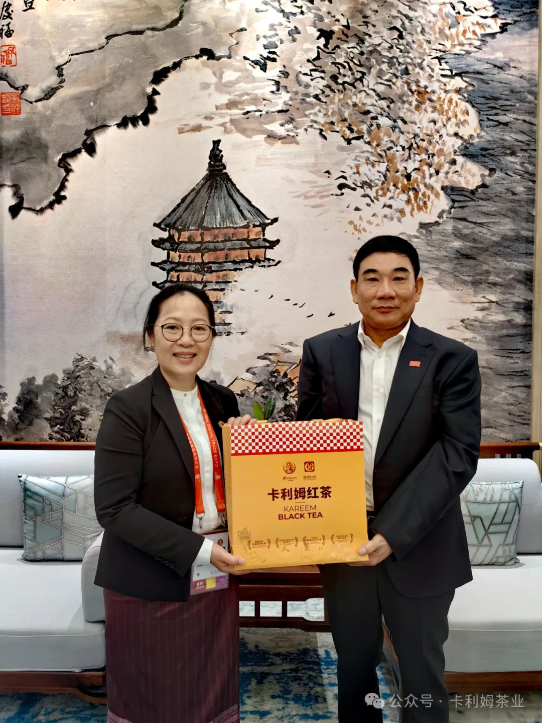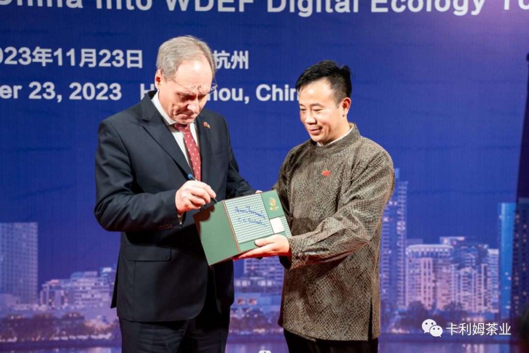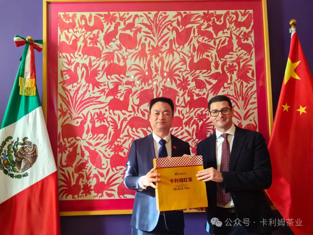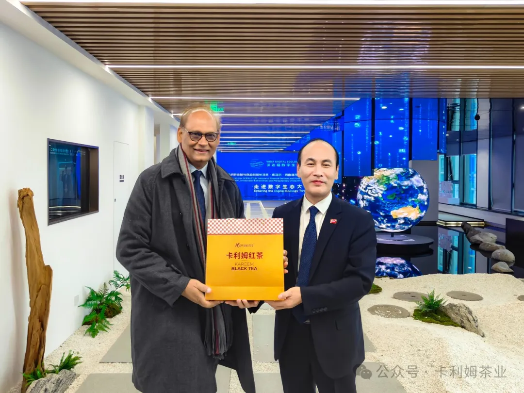 WDEF沃达福副秘书长兼数字汽车产业中心主任冯隆康、WDEF沃达福副秘书长兼对外合作部主任黄天野参加会见。会见后,卡利姆普洱茶作为伴手礼赠送与亚美尼亚驻华大使馆经济参赞卡扎良·科尔伦,表达龙年的新春祝福。