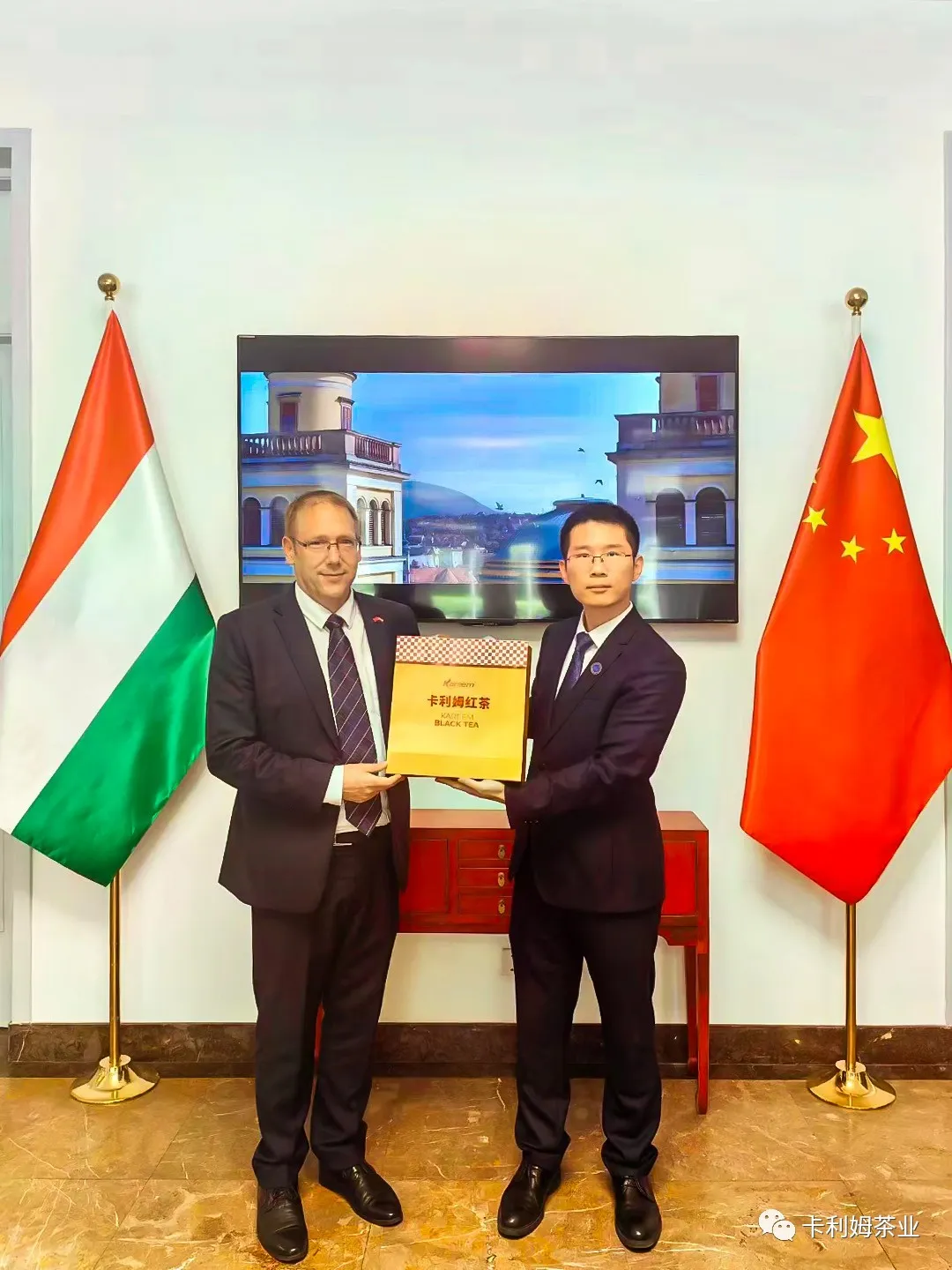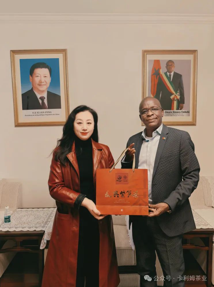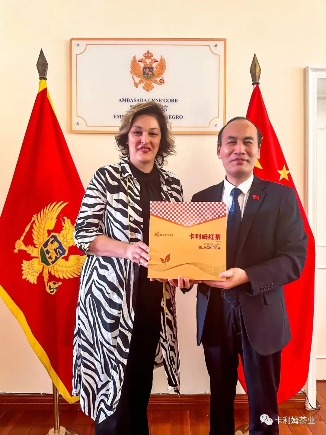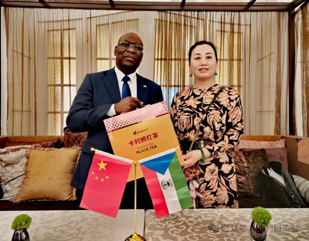 8月8日晚上,卡利姆茶业董事长裴菲在WDEF沃达福数字经济交流晚宴上,8月12日下午在北京齐家园外交公寓,分别将卡利姆红茶作为伴手礼赠送与加纳共和国驻华大使馆临时代办、副大使娜娜·阿库阿·奥乌苏·阿菲利耶女士。副大使表示,我高度赞赏卡利姆茶业提出的“卡利姆红茶飘香全球公益行”这一活动倡议,将卡利姆红茶送与非洲贫困地区的贫困家庭,将中国人民的友爱和祝福送至非洲人民,这是习近平主席倡导的构建人类命运共同体的一项有益践行举措。阿库阿·奥乌苏·阿菲利耶基金会愿与卡利姆茶业一道,携手共同推进卡利姆红茶飘香全球公益行走进非洲,走进加纳。