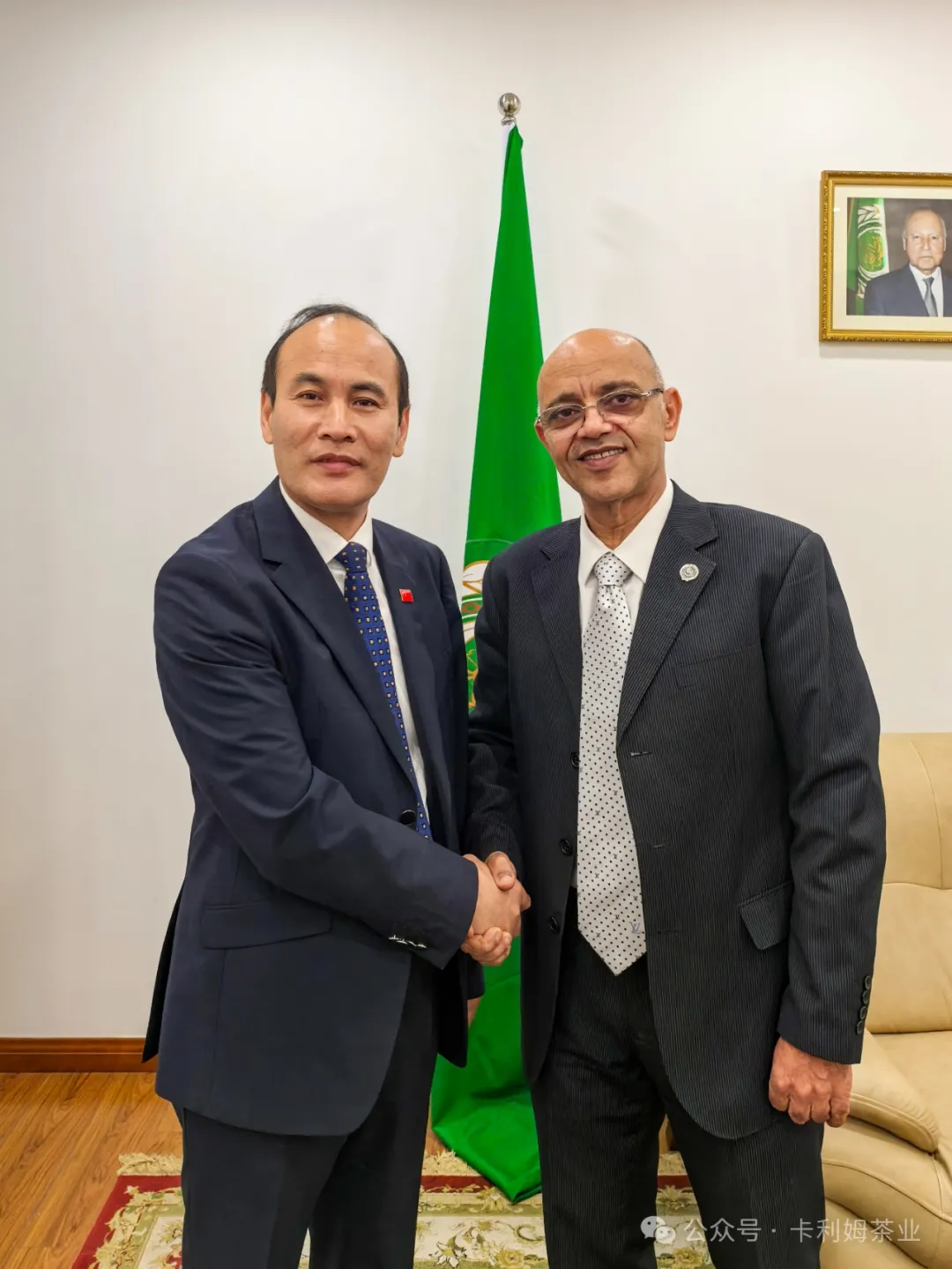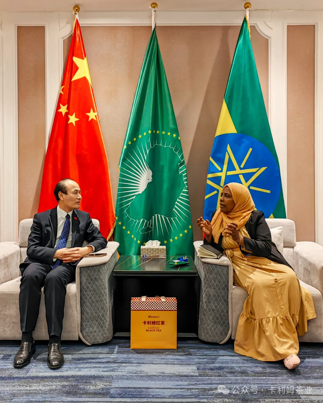 2024年6月7日上午,WDEF沃达福创始人兼执行主席秦勇、副主席龙宝山应约拜会埃塞俄比亚驻华大使馆特命全权公使蒙泰哈·杰莫女士,系统深入地介绍了即将举办的“卡利姆全球选茶大会走进非洲”活动,并诚挚邀请埃塞俄比亚有关方面出席。
