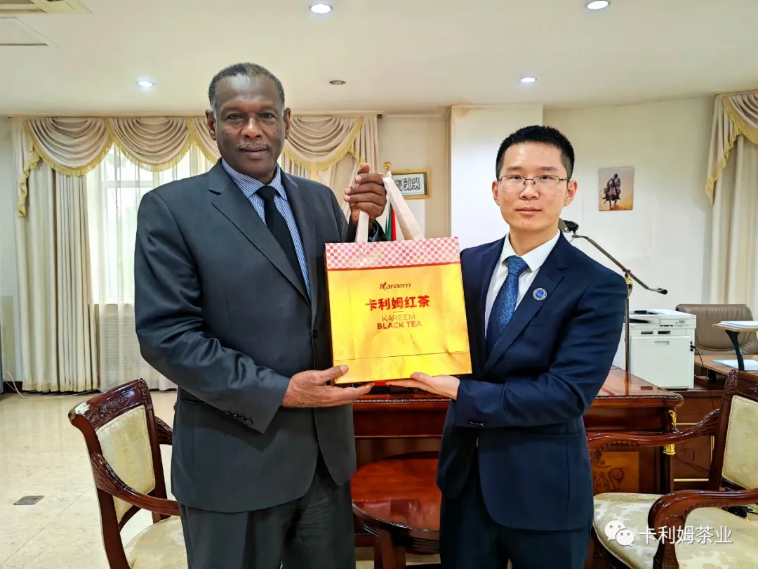 9月5日下午,WDEF沃达福创始人兼执行主席秦勇、副主席龙宝山拜会苏丹驻华大使欧麦尔·萨迪格。苏丹驻华使馆参赞穆罕默德·阿里。会见后,WDEF沃达福副秘书长兼对外合作部主任黄天野将卡利姆红茶分别赠送与苏丹驻华大使欧麦尔·萨迪格、苏丹驻华使馆参赞穆罕默德·阿里。