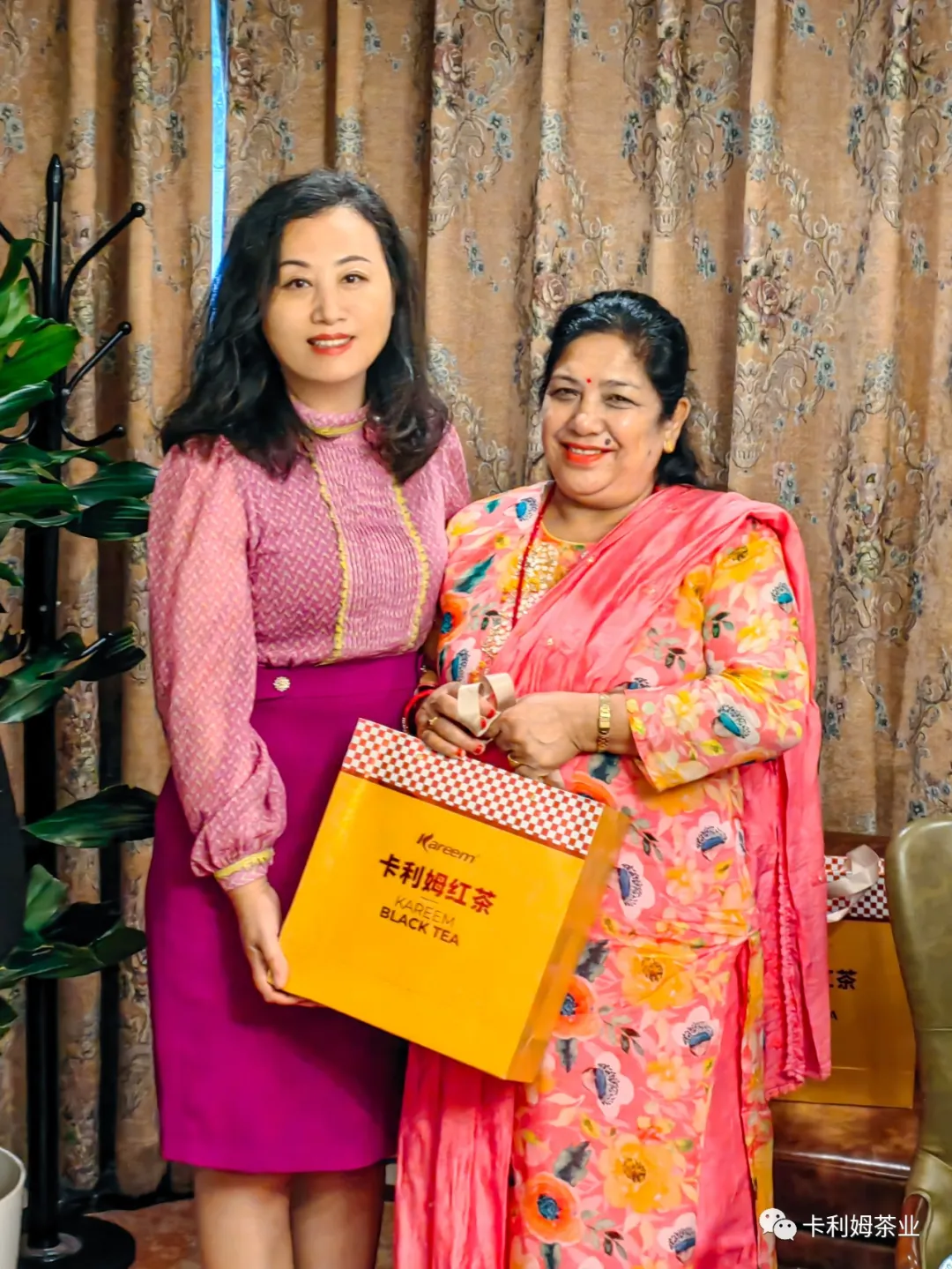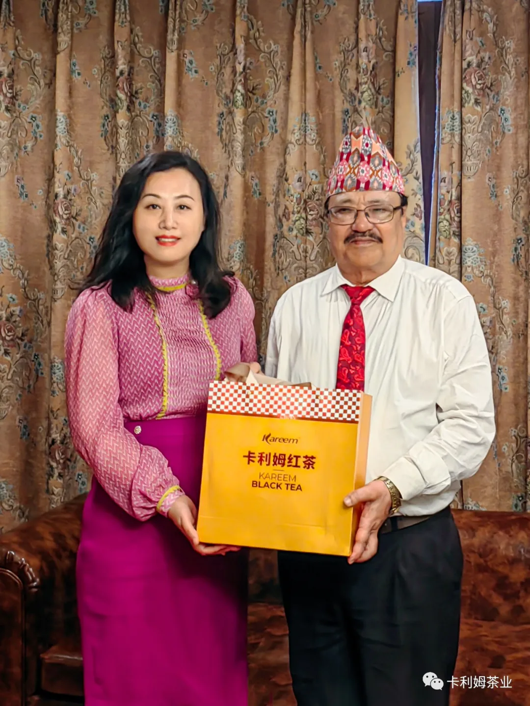 8月8日晚上,WDEF沃达福在北京举行“沃达福数字经济交流晚宴”,宴请了尼泊尔驻华大使比什努·施雷斯塔阁下和夫人宾达·库玛丽·施雷斯塔、尼泊尔驻华大使馆经济公使查宾德拉·帕拉朱利先生和夫人苏斯玛·吕特尔,以及加纳驻华大使馆临时代办、副大使娜娜·阿夸阿·阿菲利耶、利比亚驻华大使馆卫生参赞马哈茂德·谢里夫先生一行。晚宴后,卡利姆茶业董事长裴菲将卡利姆红茶作为伴手礼赠送与尼泊尔驻华大使比什努·施雷斯塔阁下和夫人宾达·库玛丽·施雷斯塔。