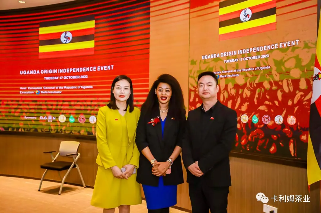 10月17日,乌干达驻广州总领事馆在广州举行乌干达独立61周年国庆招待会。卡利姆红茶(英德红茶系列)应邀成为本次招待会指定外事礼茶。WDEF沃达福副秘书长兼数字中医产业中心主任胡智海、WDEF沃达福数字医疗产业中心执行主任王羽茜出席招待会,并将卡利姆红茶赠送与各国驻广州外交使节和参会嘉宾。乌干达驻广州总领事馆总领事朱蒂丝·桑巴贝拉,广东省人民政府外事办公室副主任钱红洁、非洲处处长蒋振钦、非洲处副处长朱兴媛,广州市人民政府外事办公室一级调研员(市管)旷昌平、领事与涉外安全处处长刘大军等领导及嘉宾出席本次活动。
