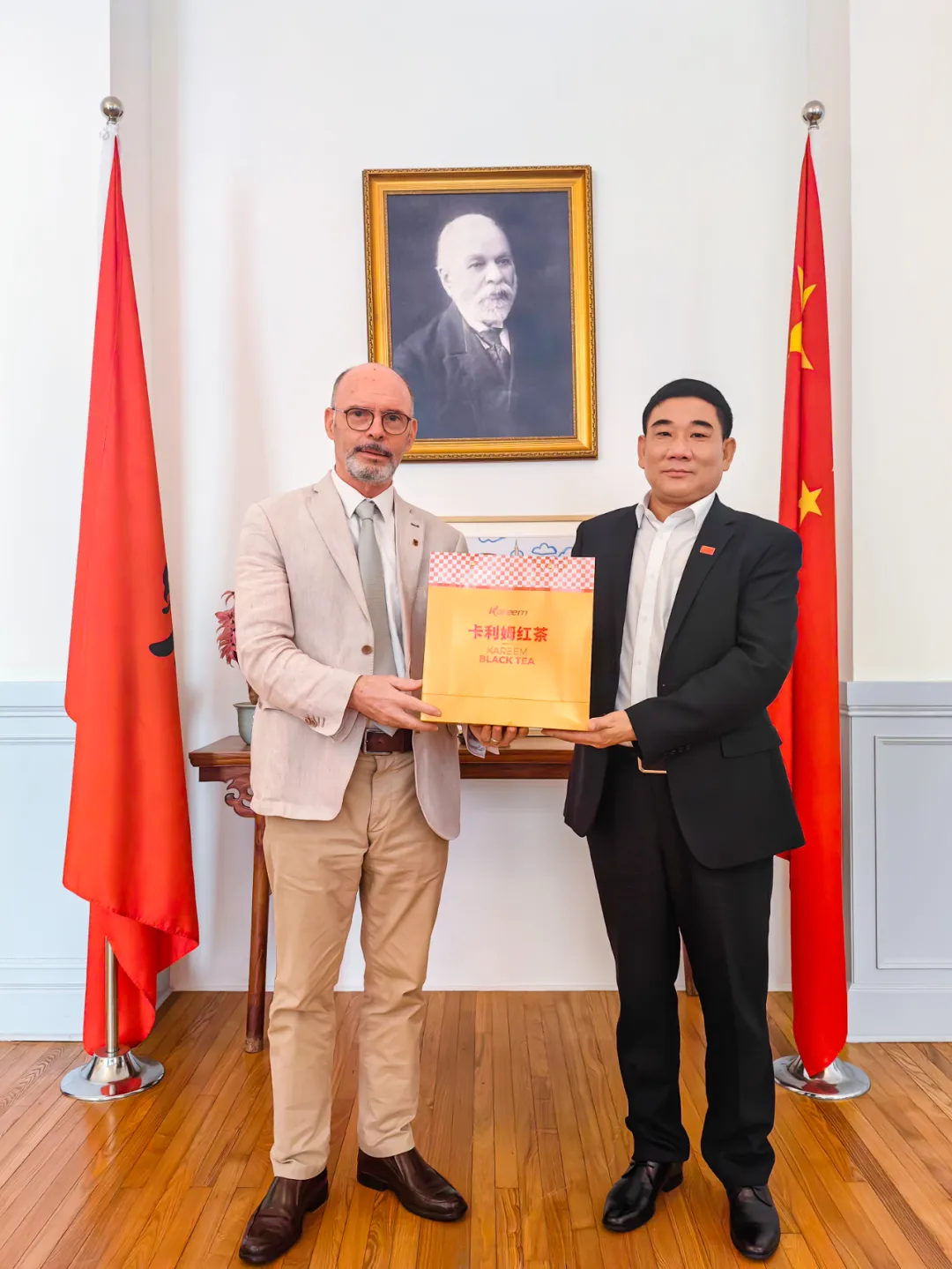 9月12日上午,WDEF沃达福创始人兼执行主席秦勇、副主席龙宝山拜会阿尔巴尼亚驻华大使塞利姆·贝洛尔塔亚。WDEF沃达福副秘书长兼对外合作部主任黄天野参加会见。会见后,WDEF沃达福副主席龙宝山将卡利姆红茶作为伴手礼赠送与塞利姆·贝洛尔塔亚大使。
