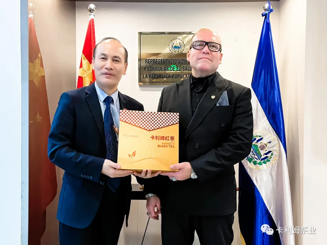 11月15日晚上,WDEF沃达福、萨尔瓦多驻华大使馆在京举行工作晚餐会,重点讨论在杭州设立萨尔瓦多商务中心事宜。WDEF沃达福创始人兼执行主席秦勇,萨尔瓦多驻华大使阿尔多·阿尔瓦雷斯、政治参赞索菲亚·卡尔德隆、商务参赞佩德罗·哈耶姆等参加晚餐会。晚餐会结束后,卡利姆茶业董事长裴菲将卡利姆红茶作为伴手礼赠送与萨尔瓦多驻华大使阿尔多·阿尔瓦雷斯、政治参赞索菲亚·卡尔德隆、商务参赞佩德罗·哈耶姆。