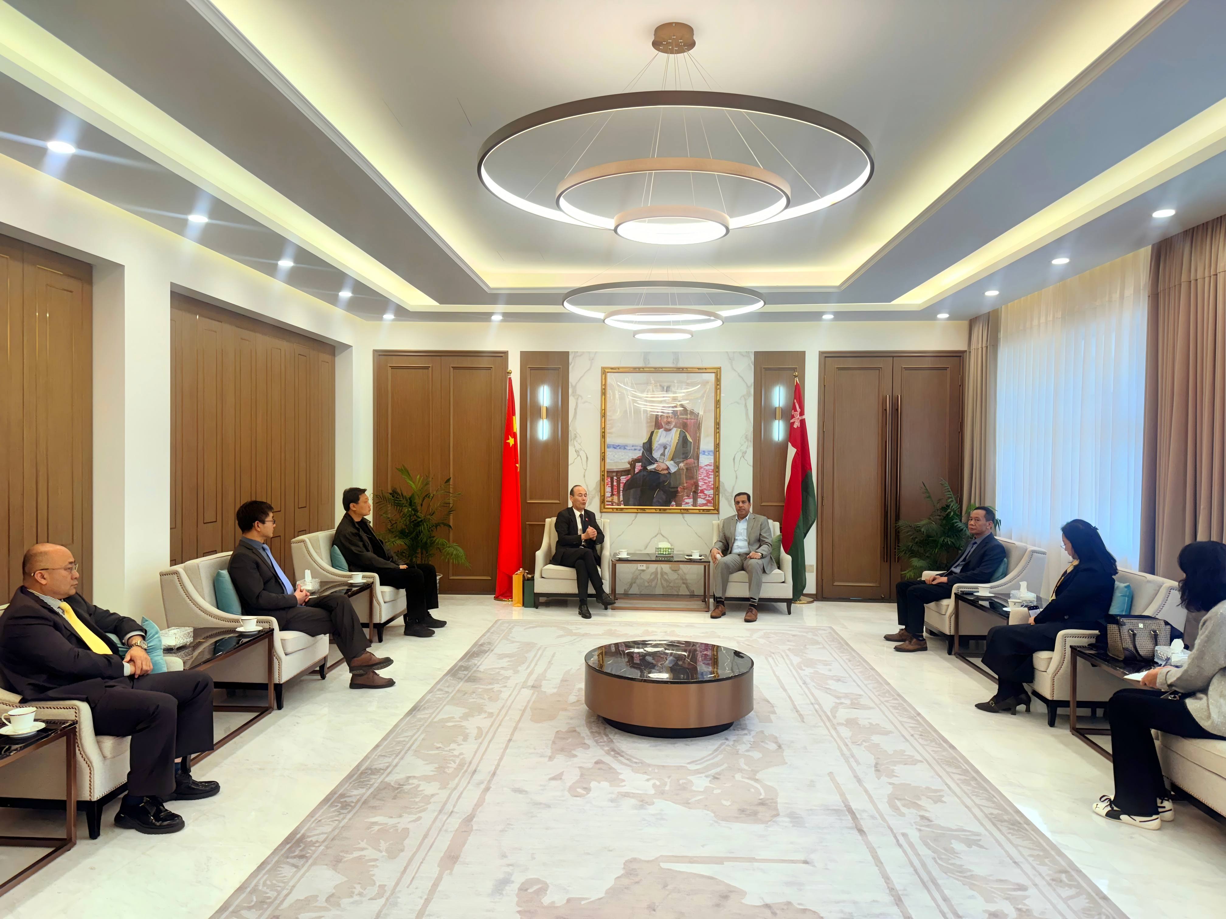会谈期间,阿里·哈桑尼还邀请中阿网组织优秀中国企业代表出席阿曼国庆招待会,与各国驻华使节及阿曼政商界人士交流,共同探讨中国企业赴阿曼投资贸易的合作机遇。