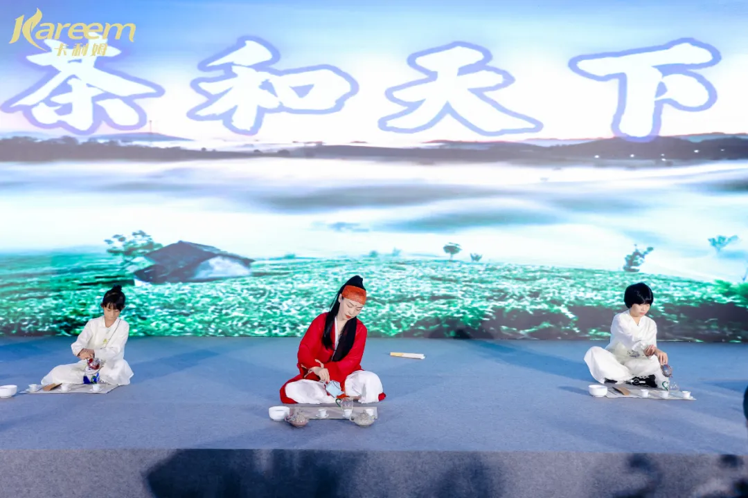 卡利姆国际茶礼艺术团文妮带领秦念祖、秦媛德两位卡利姆小茶人则为中外嘉宾献上茶艺表演《茶和天下》。两位小茶人虽年纪尚轻,却动作娴熟,从温杯洁具到分茶奉客,一招一式尽显茶道精髓。这场融合传统与现代的表演赢得了场内外的阵阵喝彩。
