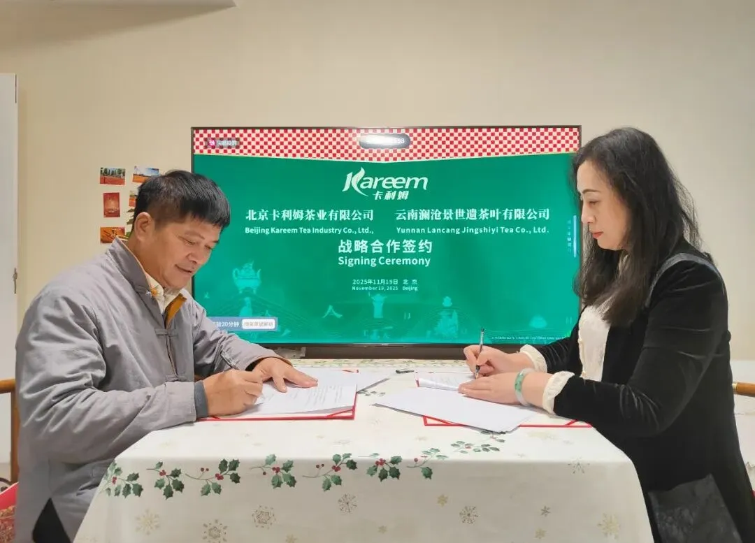 【卡利姆国际动态】2025年11月19日,北京卡利姆茶业有限公司与云南澜沧景世遗茶叶有限公司在北京齐家园外交公寓签署战略合作协议。双方将围绕景迈山茶产业国际化发展、茶旅融合及产品创新展开深度合作,共同推动中国茶文化走向世界。