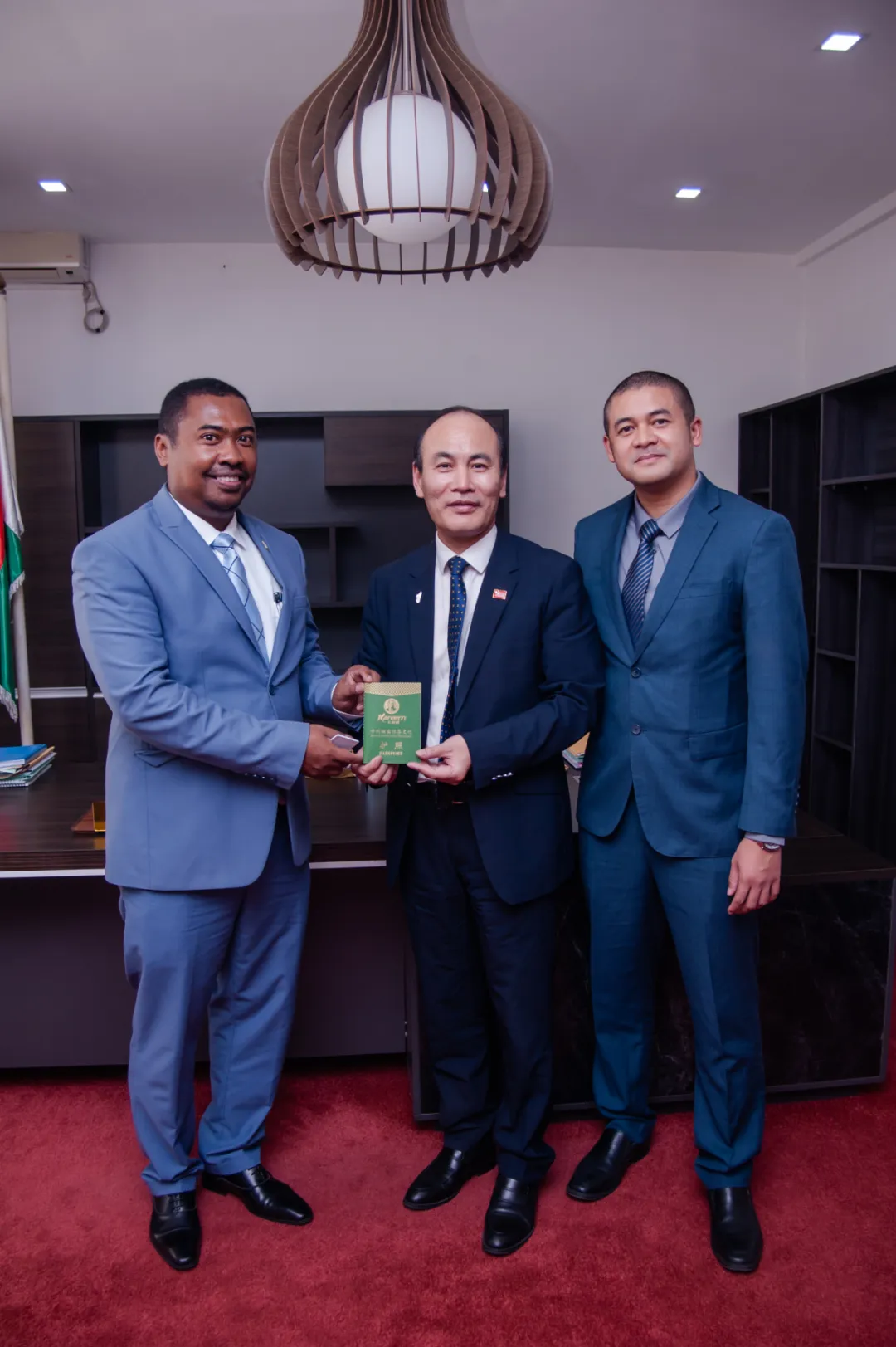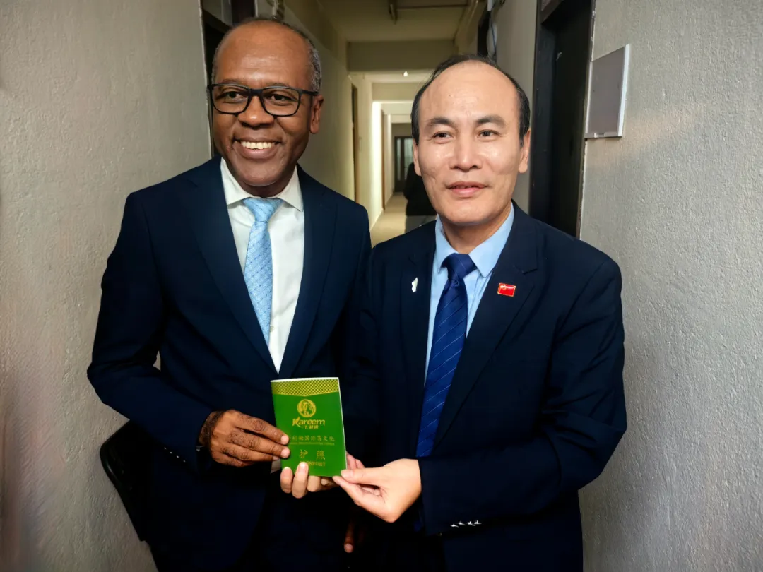 12月11日下午,秦勇一行拜会马达加斯加交通部长朱斯特·克雷桑·拉哈里松。会见结束后,秦勇将“卡利姆国际茶文化护照”赠送给部长。部长欣然在茶护照上题写寄语,希望马中两国在交通基础设施建设方面开展更加广泛的合作。